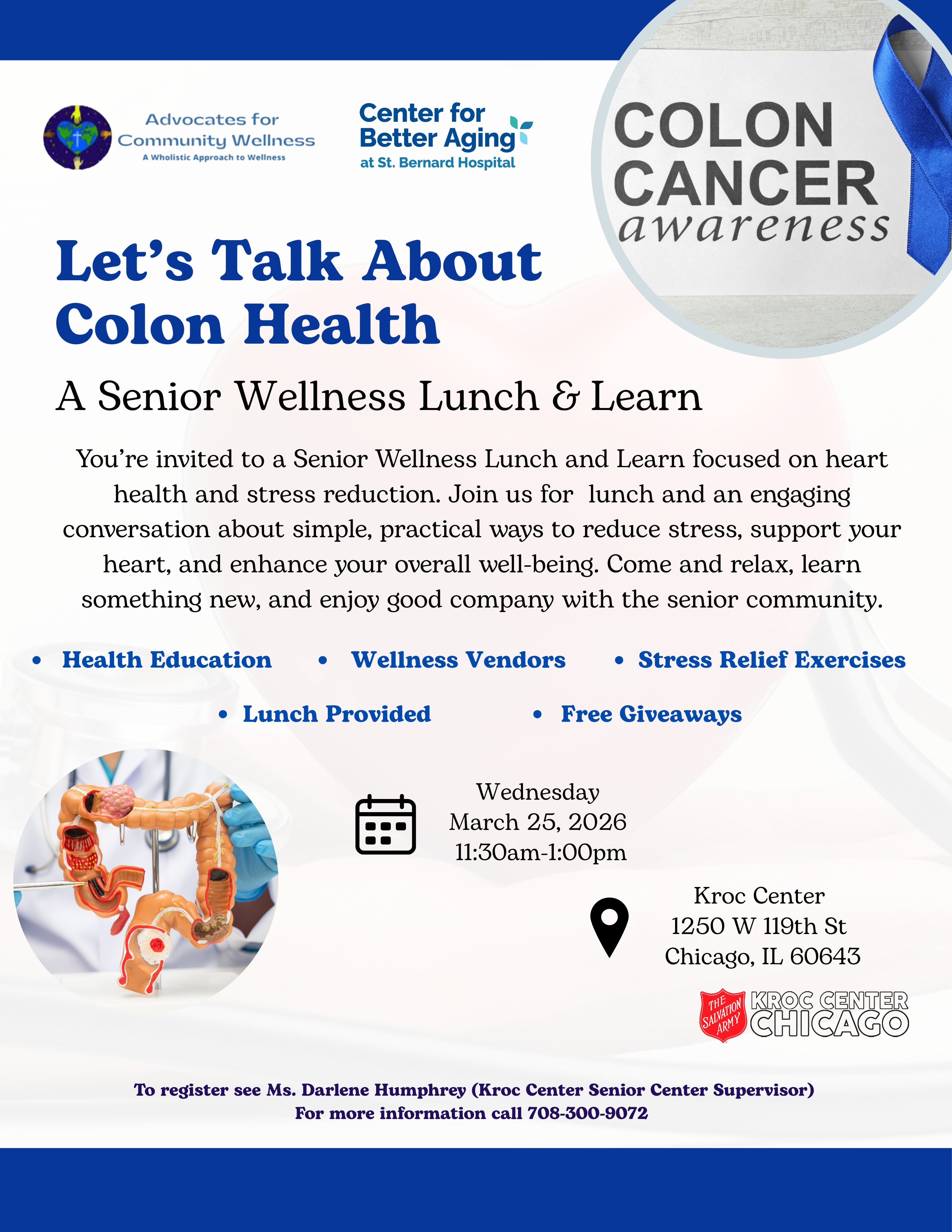 Join The Englewood Dementia Friendly Task Force for an informative session hosted by Access Community Health Network (ACCESS). Participants will enjoy group activities while learning about healthy eating through a healthy food demonstration from a Registered Dietitian. This session is designed to support older adults and caregivers. Attendees will also receive helpful resources on dementia-friendly care. Light refreshments will be provided.