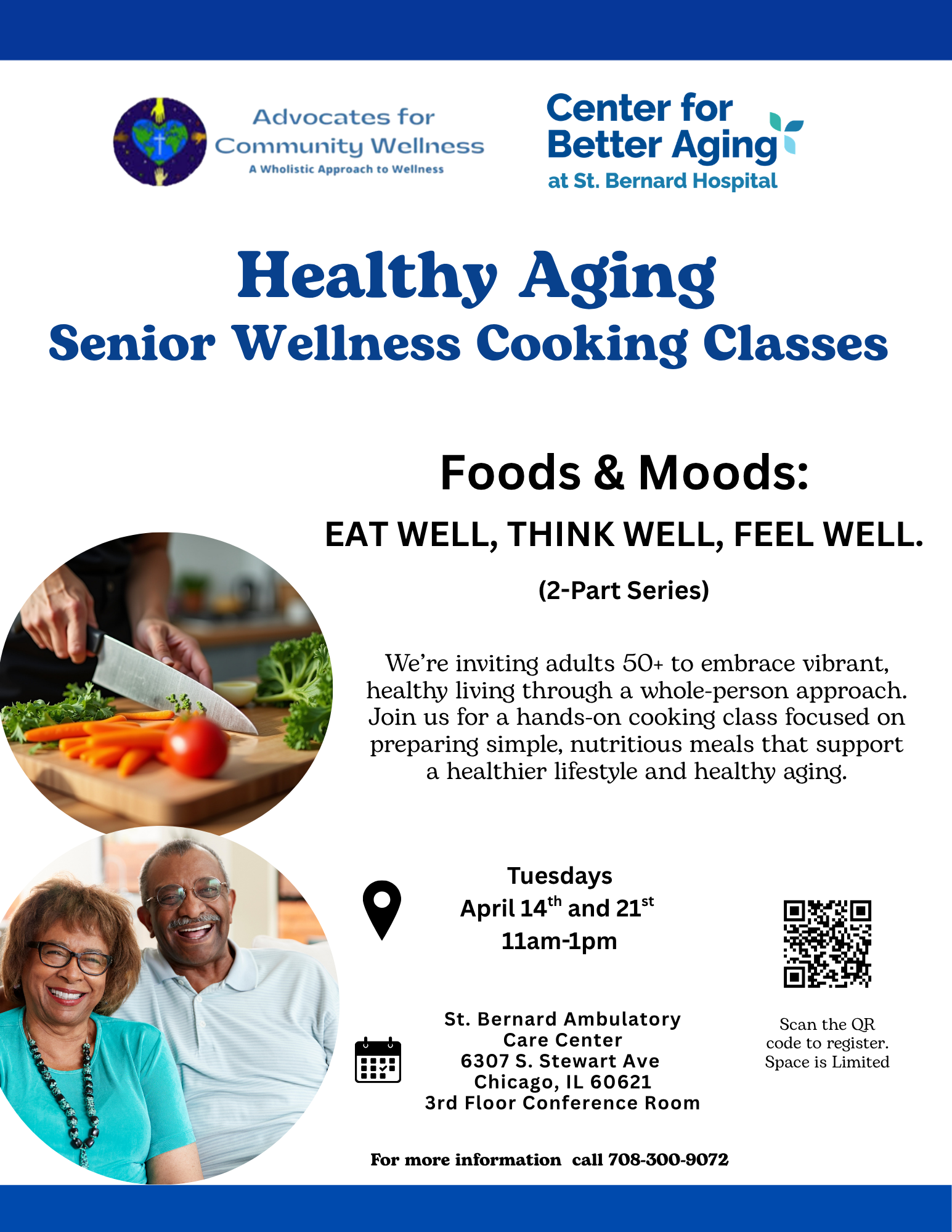 We're inviting adults 50+ to embrace vibrant, healthy living through a whole-person approach. Join us for a hands-on cooking class focused on preparing simple, nutritious meals that support a healthier lifestyle and healthy aging.
